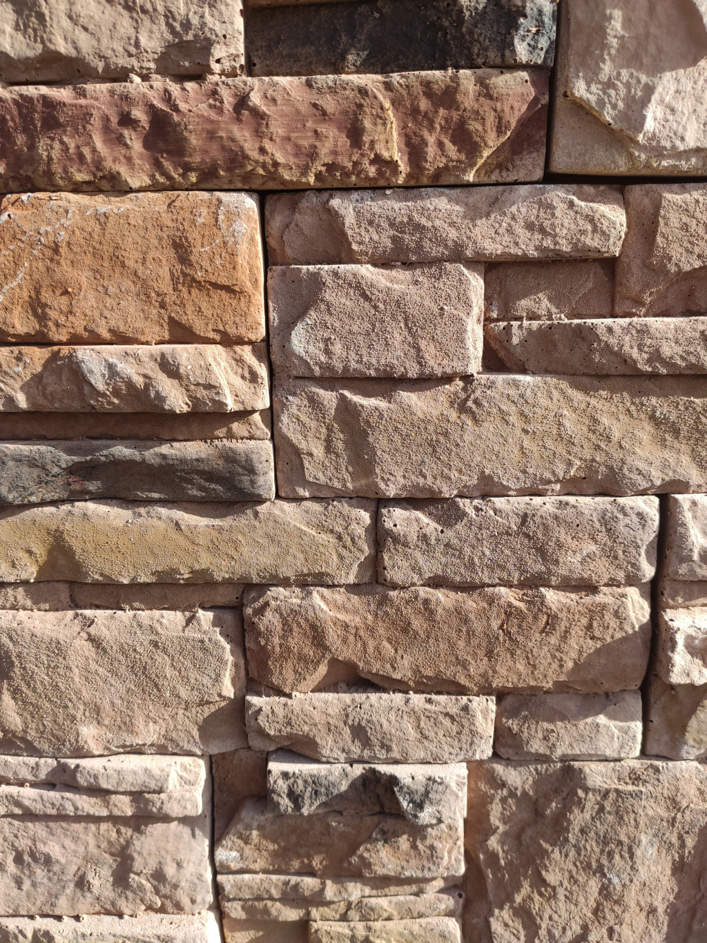 A panelen belül minden kődarab téglalap vagy négyszög alakú, de a sorok eltérő magasságúak. A panel nem vastag és nincs robosztus hatása.